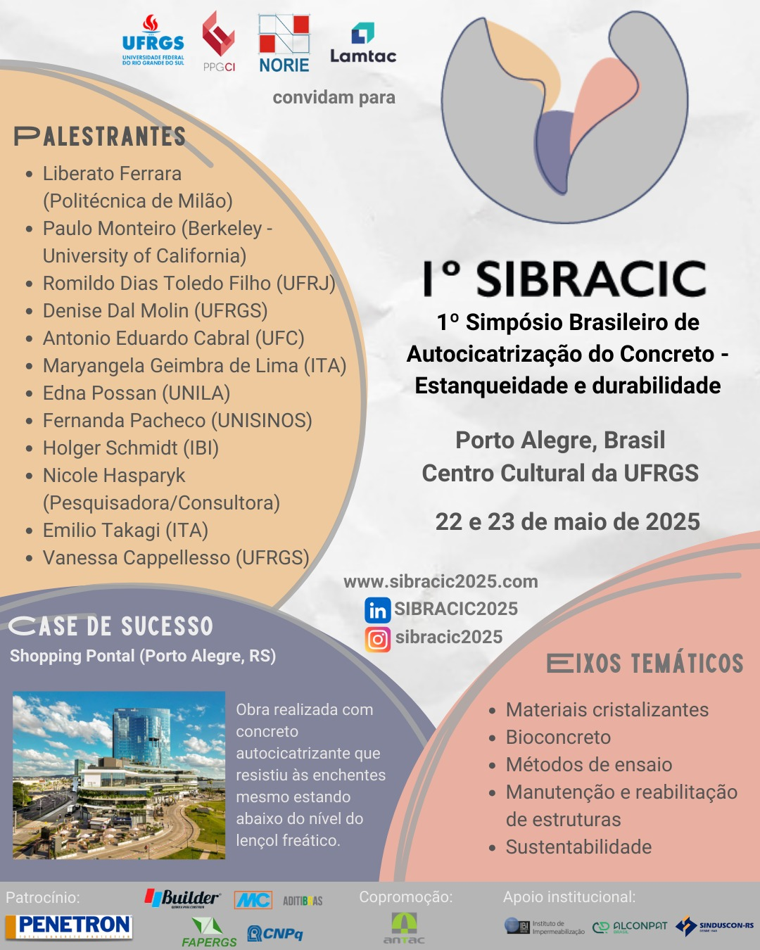 Desde nossa criação, realizamos congressos, reforçando a sinergia entre ciência e mercado. Além disso, os SEMPATs (Seminários de Patologia das Construções) levam conhecimento de qualidade, com participação das maiores referências do Brasil na área.